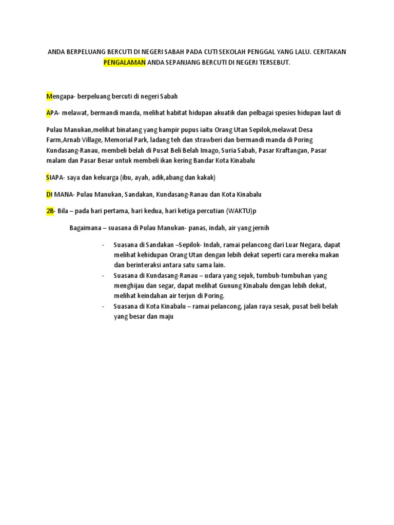 Anda Berpeluang Bercuti Di Negeri Sabah Pada Cuti Sekolah Penggal Yang Lalu Pdf